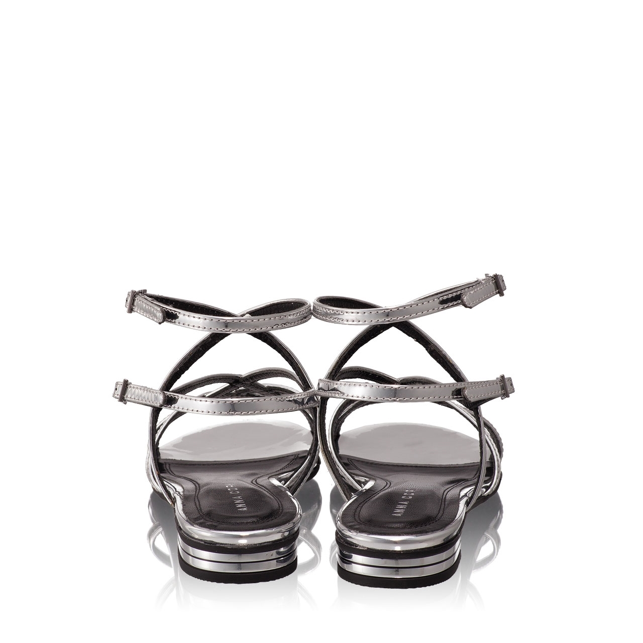 Sandale dama cu talpa joasa,din piele spechio (efect oglinda).Inchiderea se face cu doua catarame laterale.