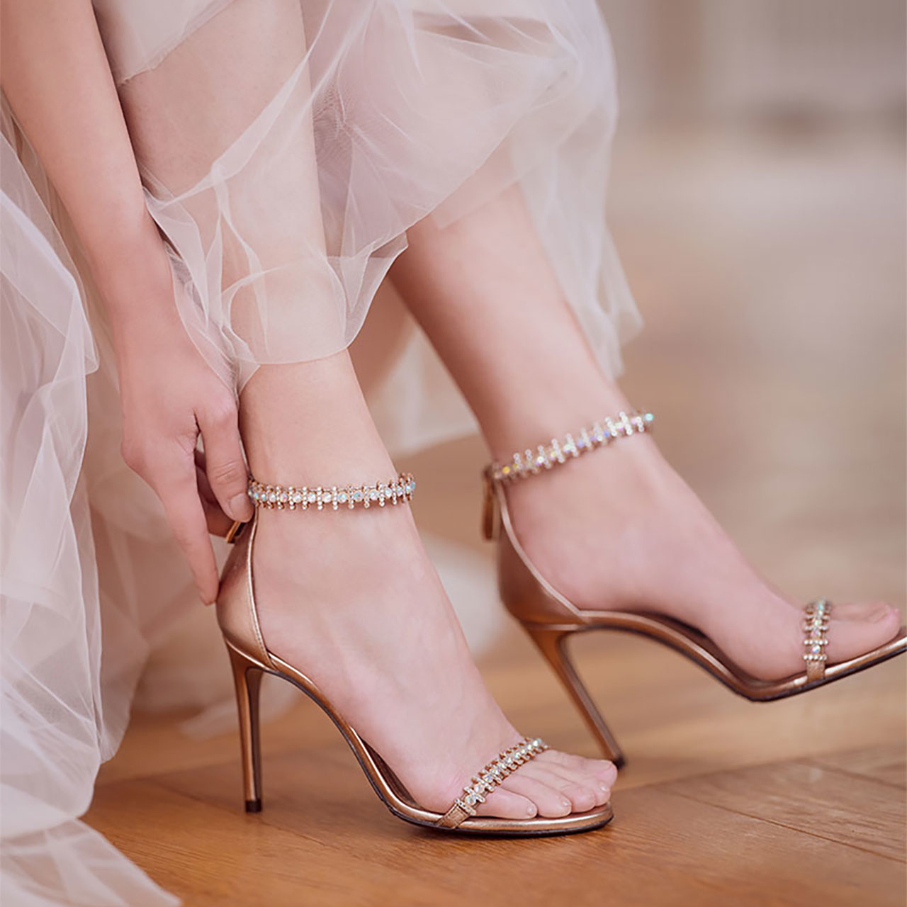 Sandale dama din piele naturala laminata, prevazute cu barete accesorizate.