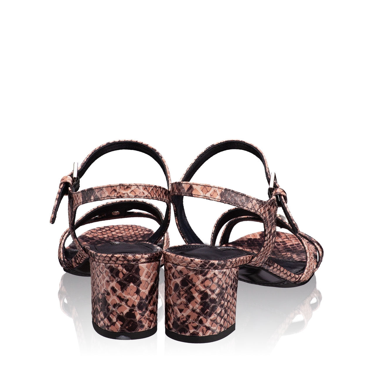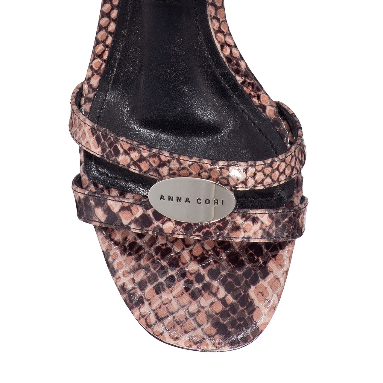 Sandale dama din material pitone cu accesoriu metalic.Inchiderea se face cu catarama laterala.
