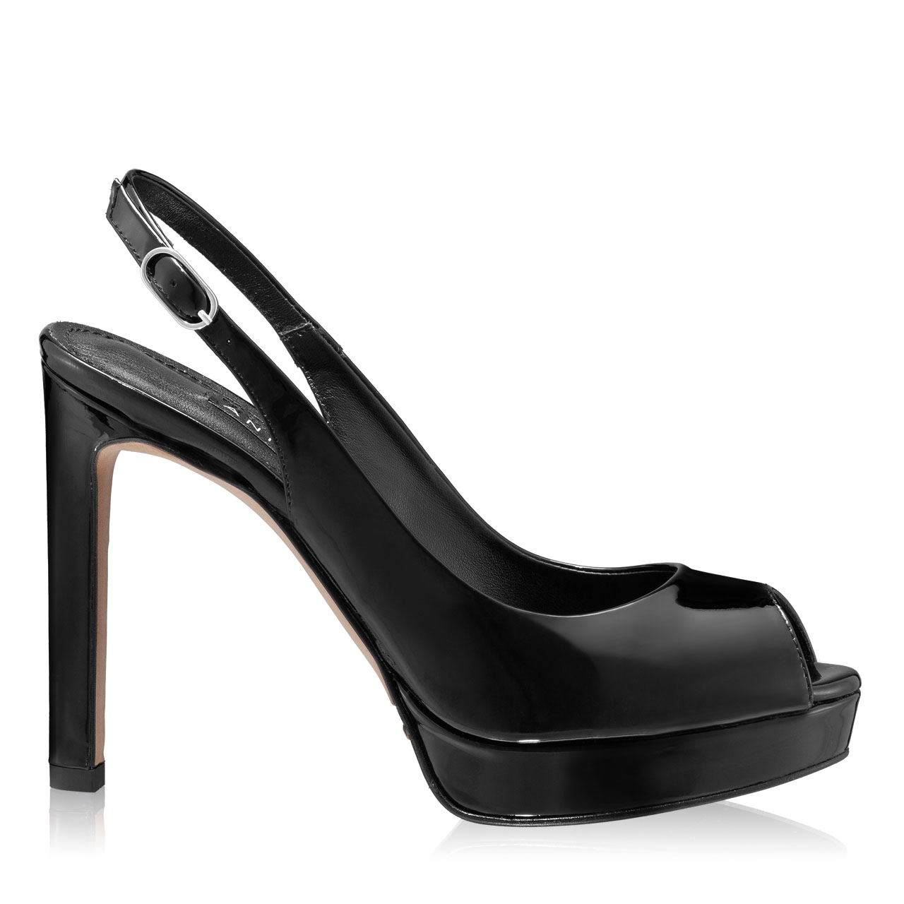 Sandale dama din piele naturala lacuita. Dimensiunea tocului este de 95 mm. Inchiderea se face prin bareta.