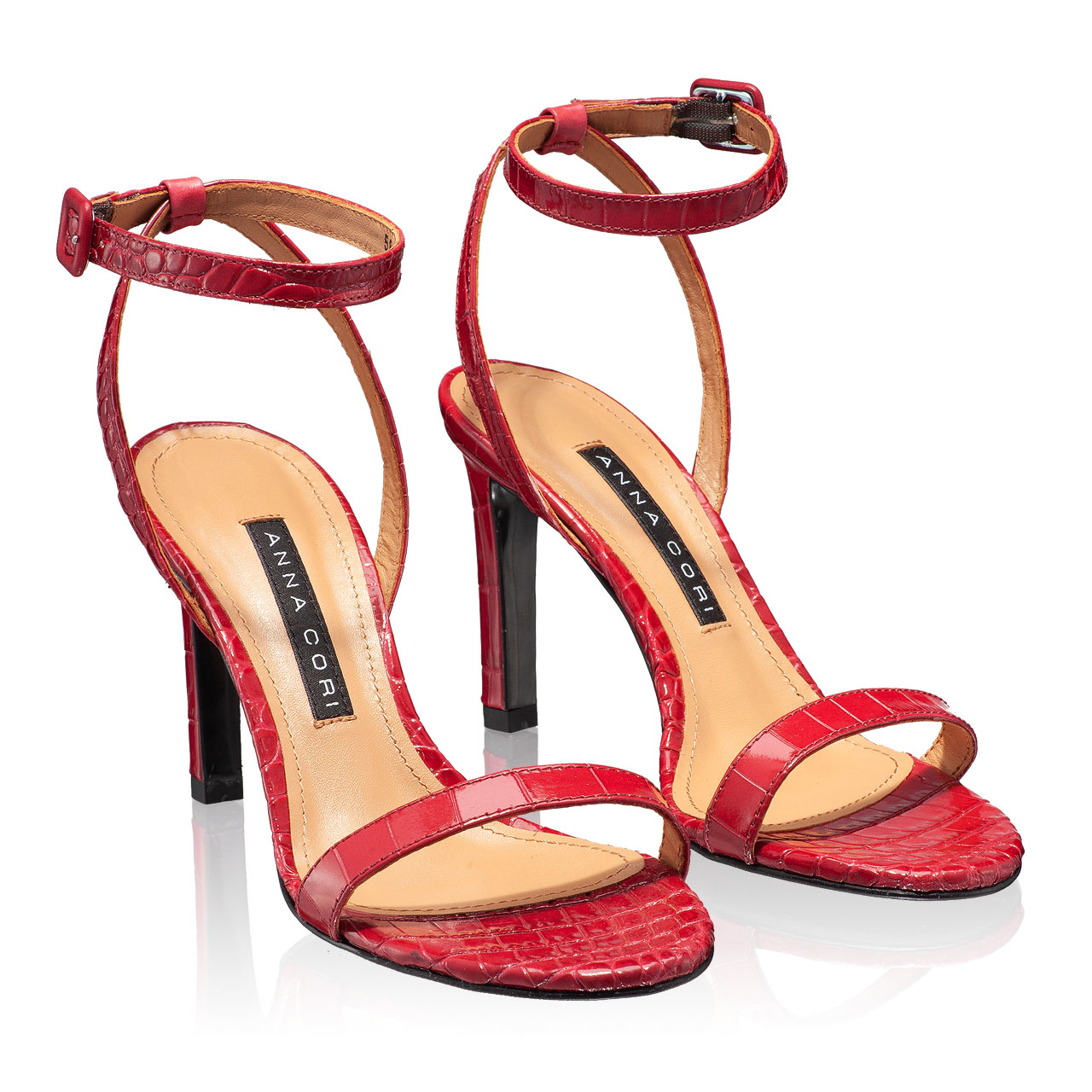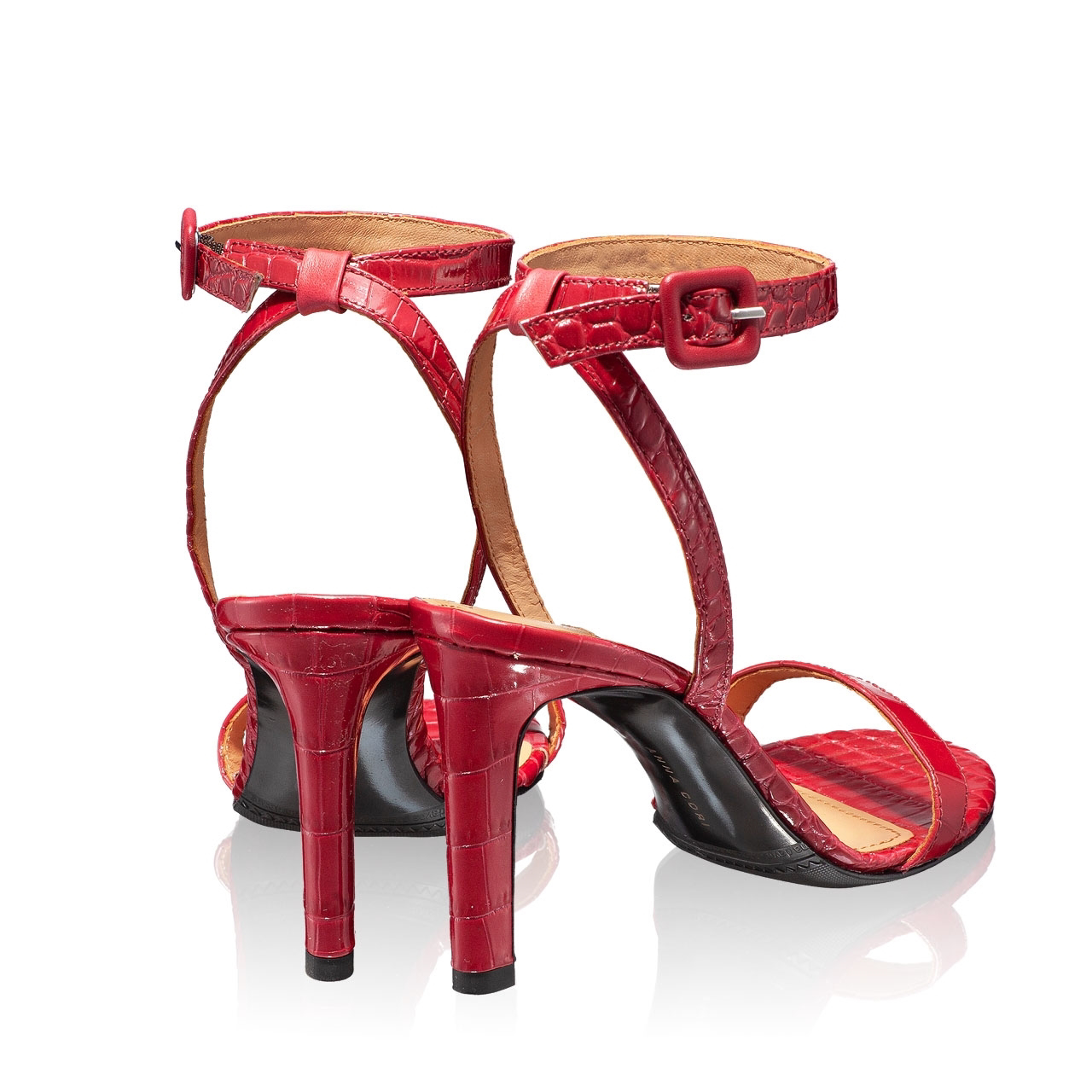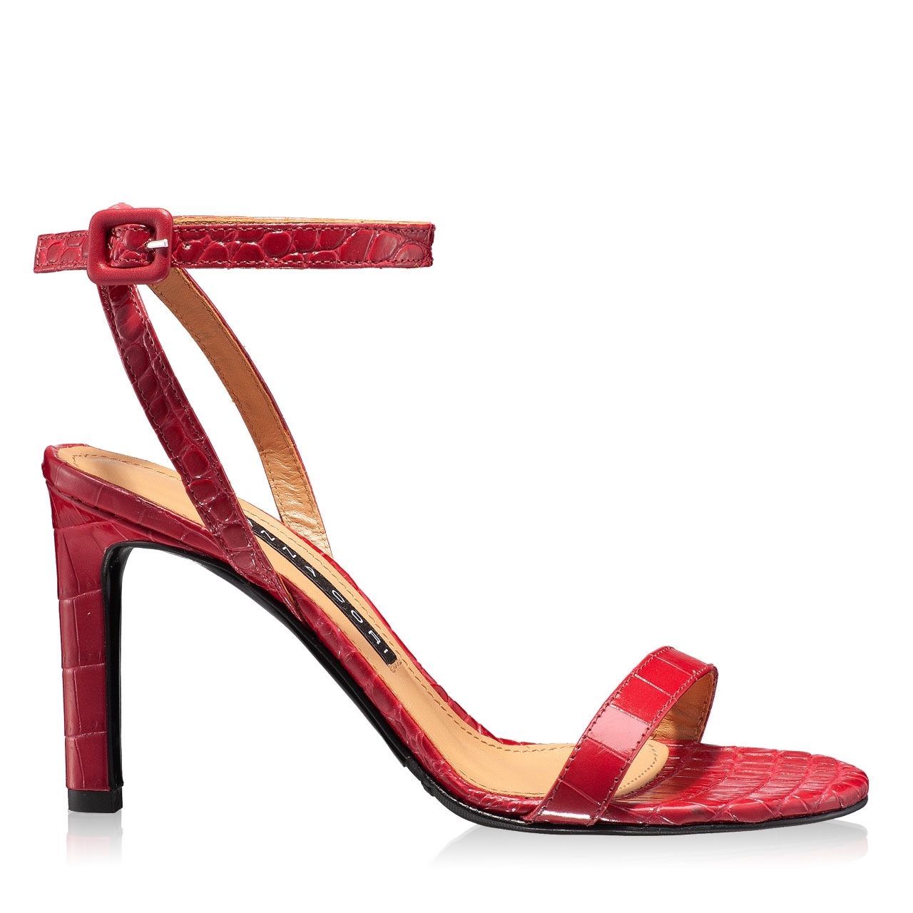Sandale dama din piele croco, cu inchidere laterala.