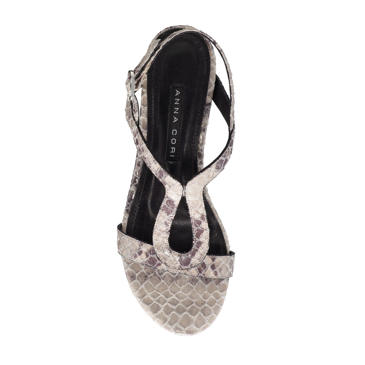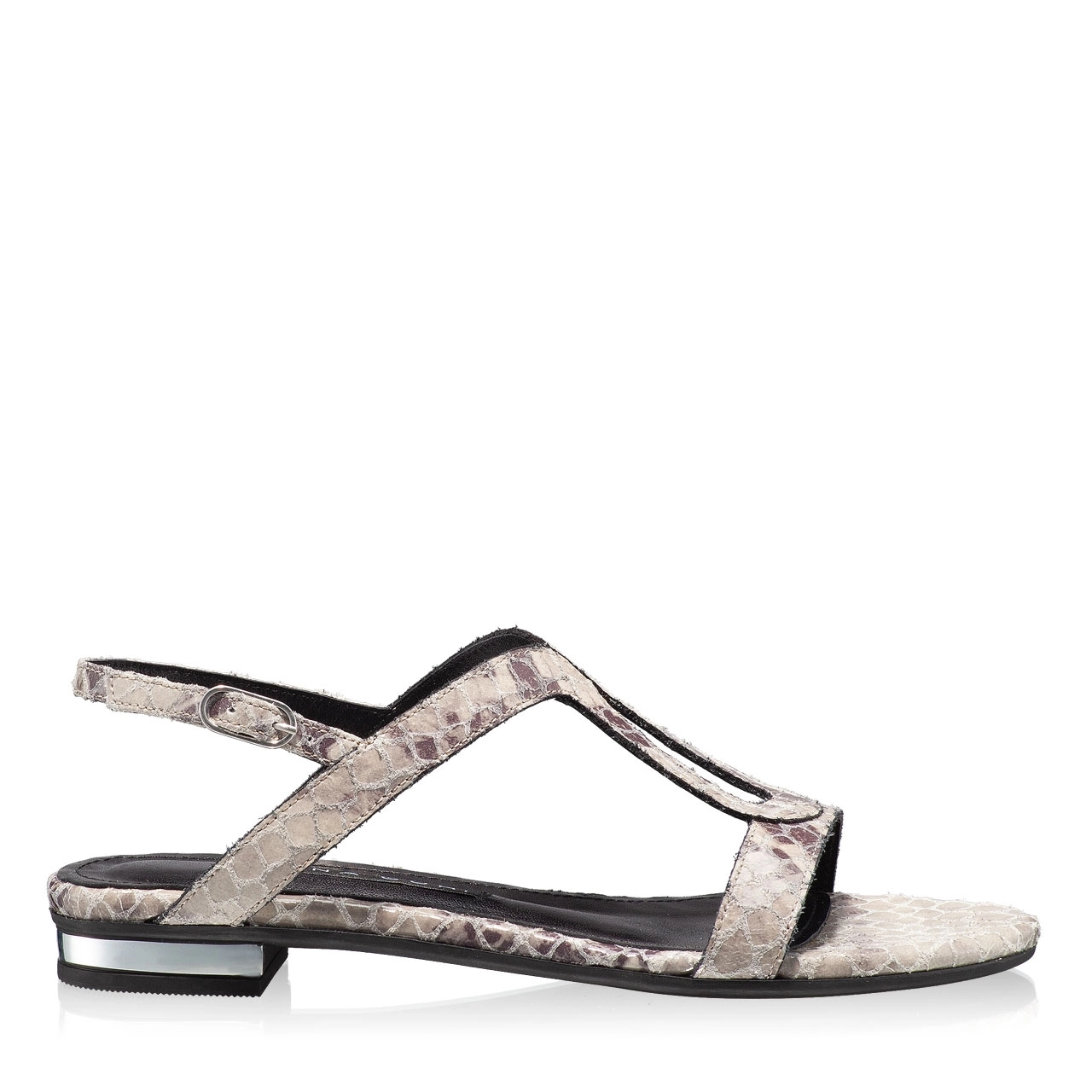 Sandale dama din piele naturala cu imprimeu si inchidere laterala.