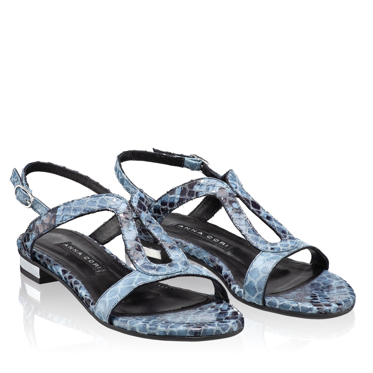 Sandale dama din piele naturala cu imprimeu si inchidere laterala.