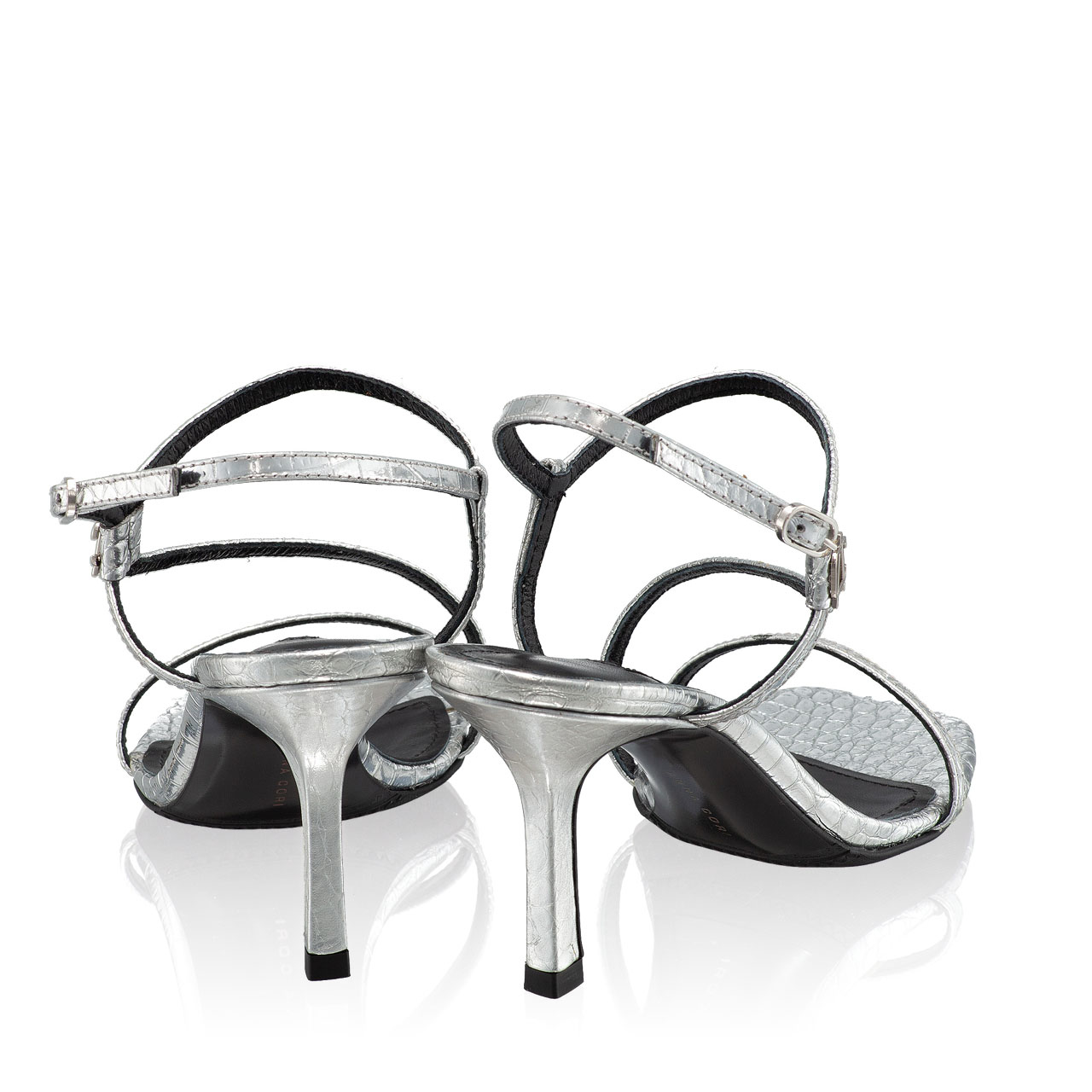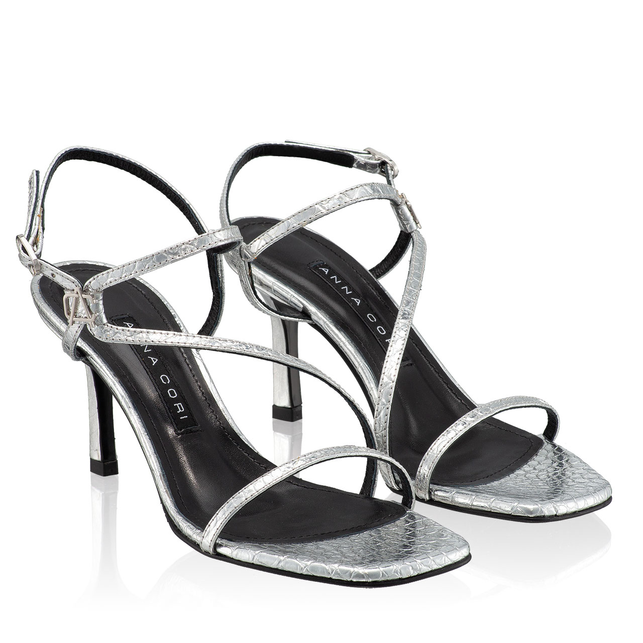 Sandale dama din piele naturala croco, cu inchidere laterala, accesorizate cu monograma ANNA CORI.