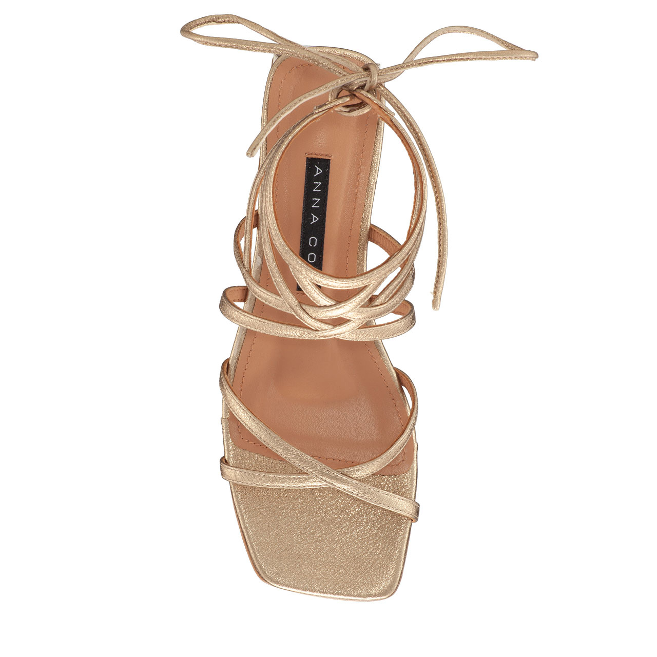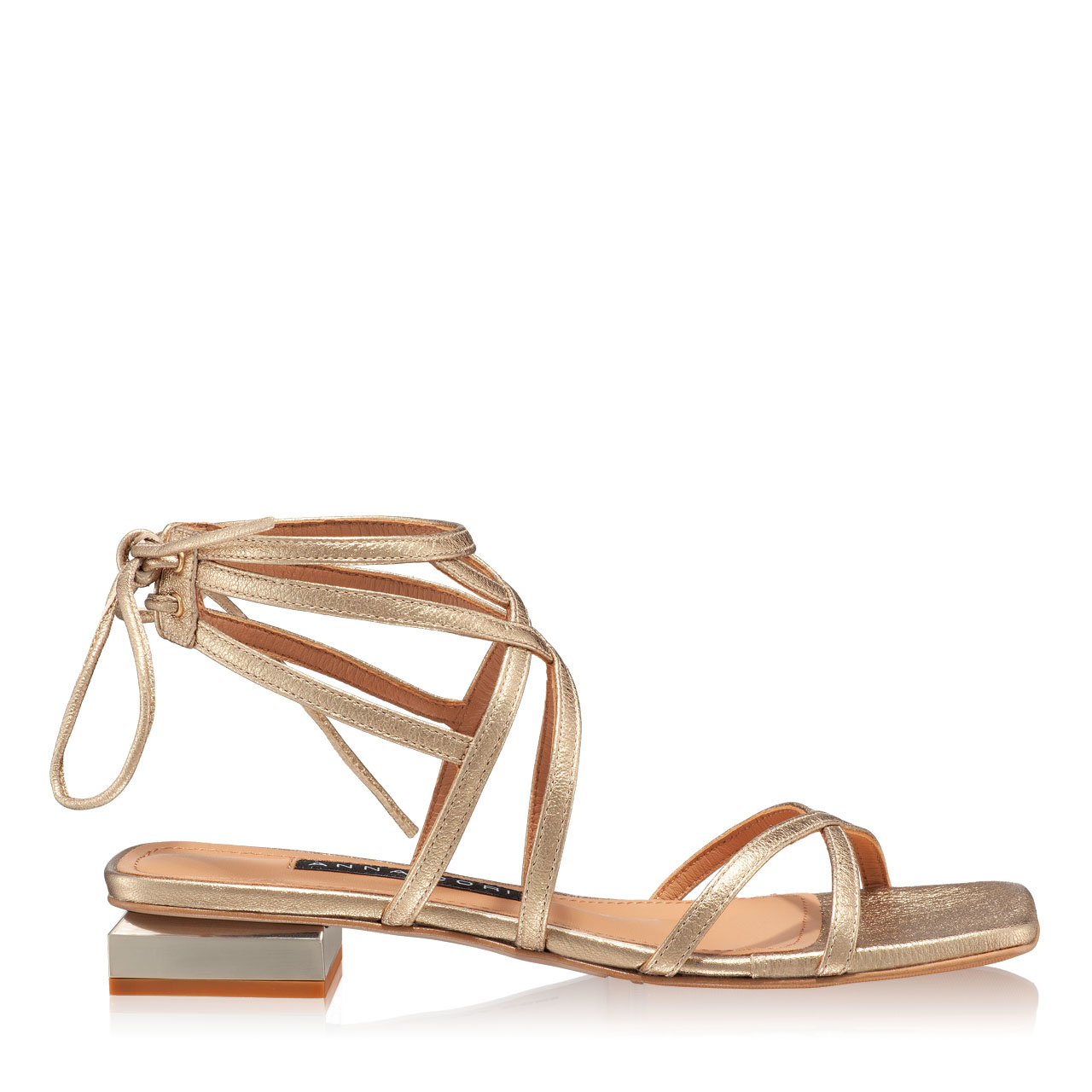 Sandale dama din piele naturala laminata, prevazute cu baretesi snur la spate.Sunt captusite cu piele naturala, iar tocul patrat are o inaltime de 20 mm.