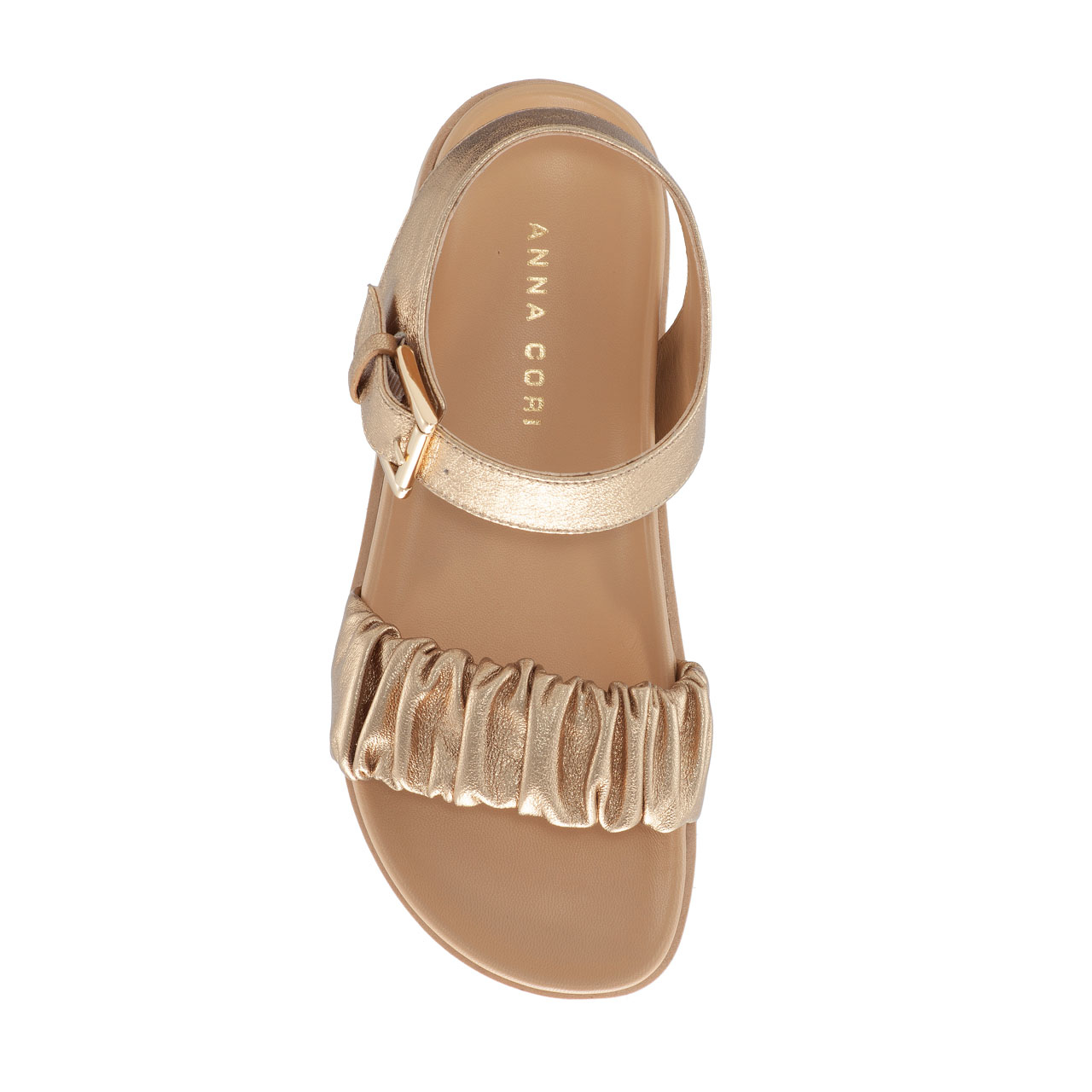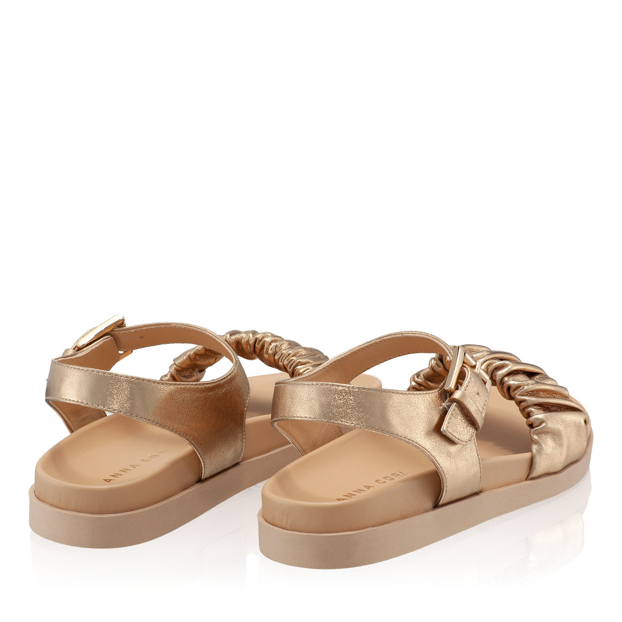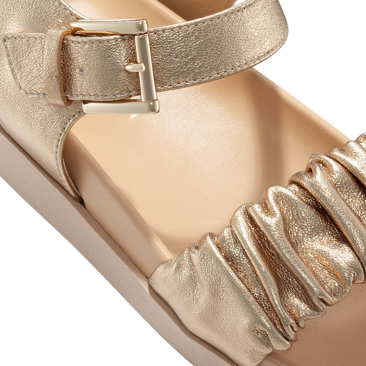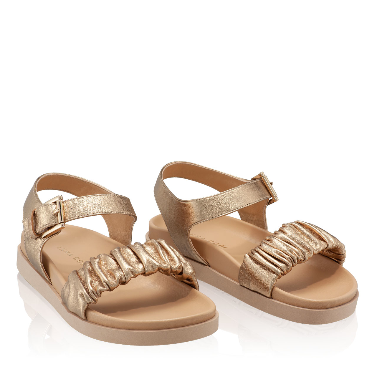 Sandale dama din piele naturala laminata, fara toc.Inchiderea se face cu catarama aurie, sunt captusite cu piele naturala.