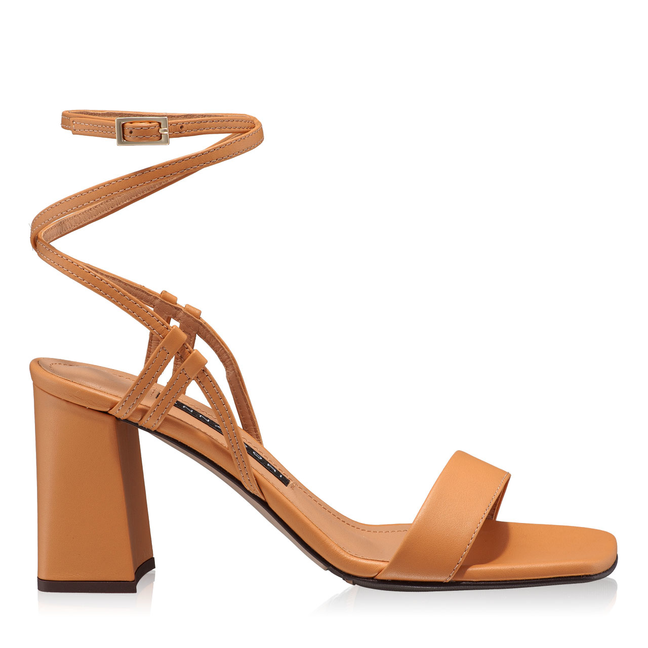 Sandale dama din piele naturala, prevazute cu barete.Inchiderea se face cu catarama aurie.Inaltimea tocului este de 75mm.