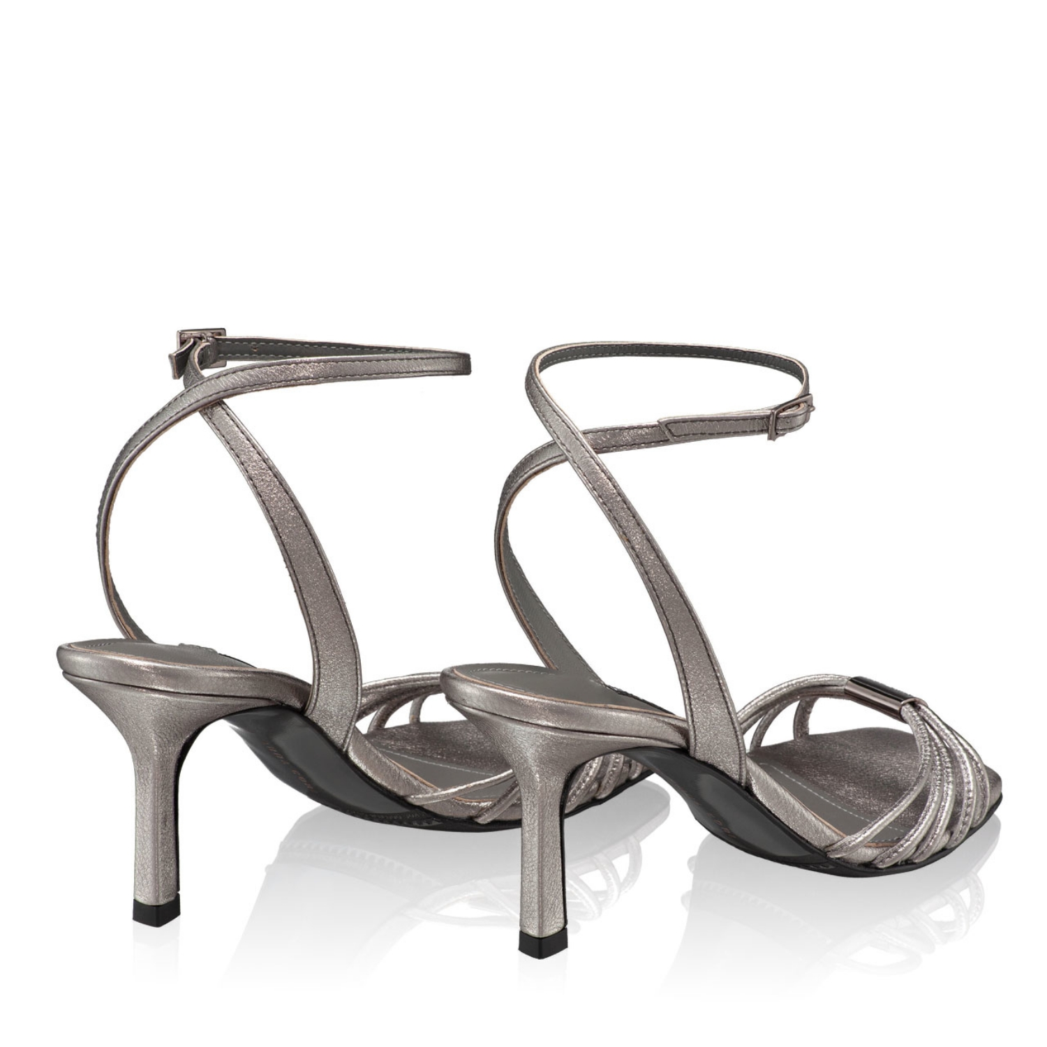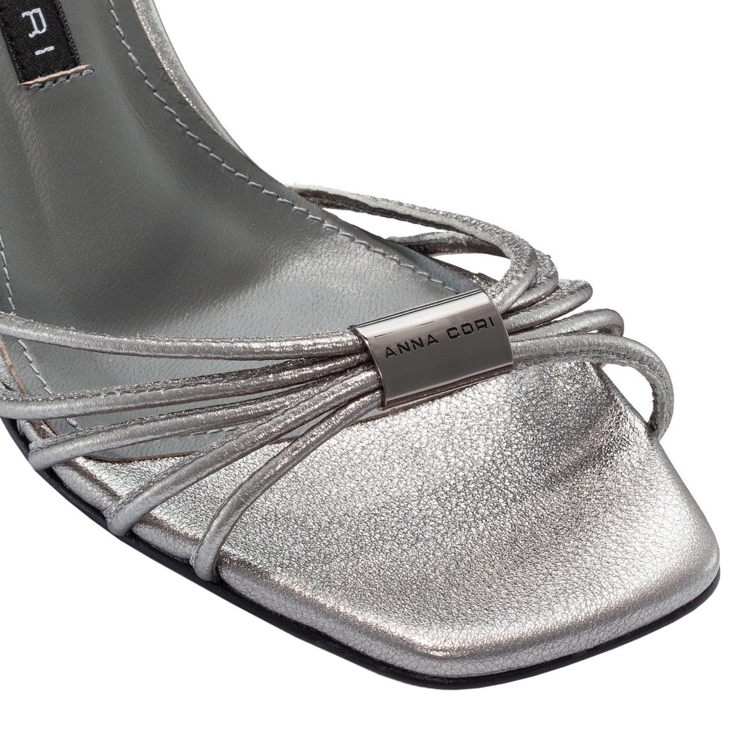 Sandale dama din piele naturala laminata, prevazute cu accesoriu metalic personalizat cu logo-ul Anna Cori.