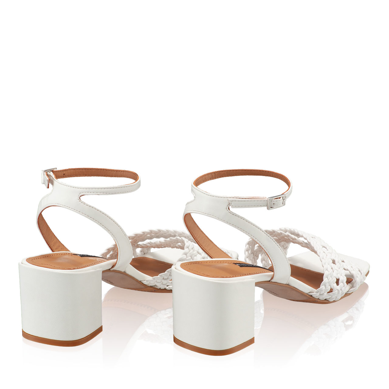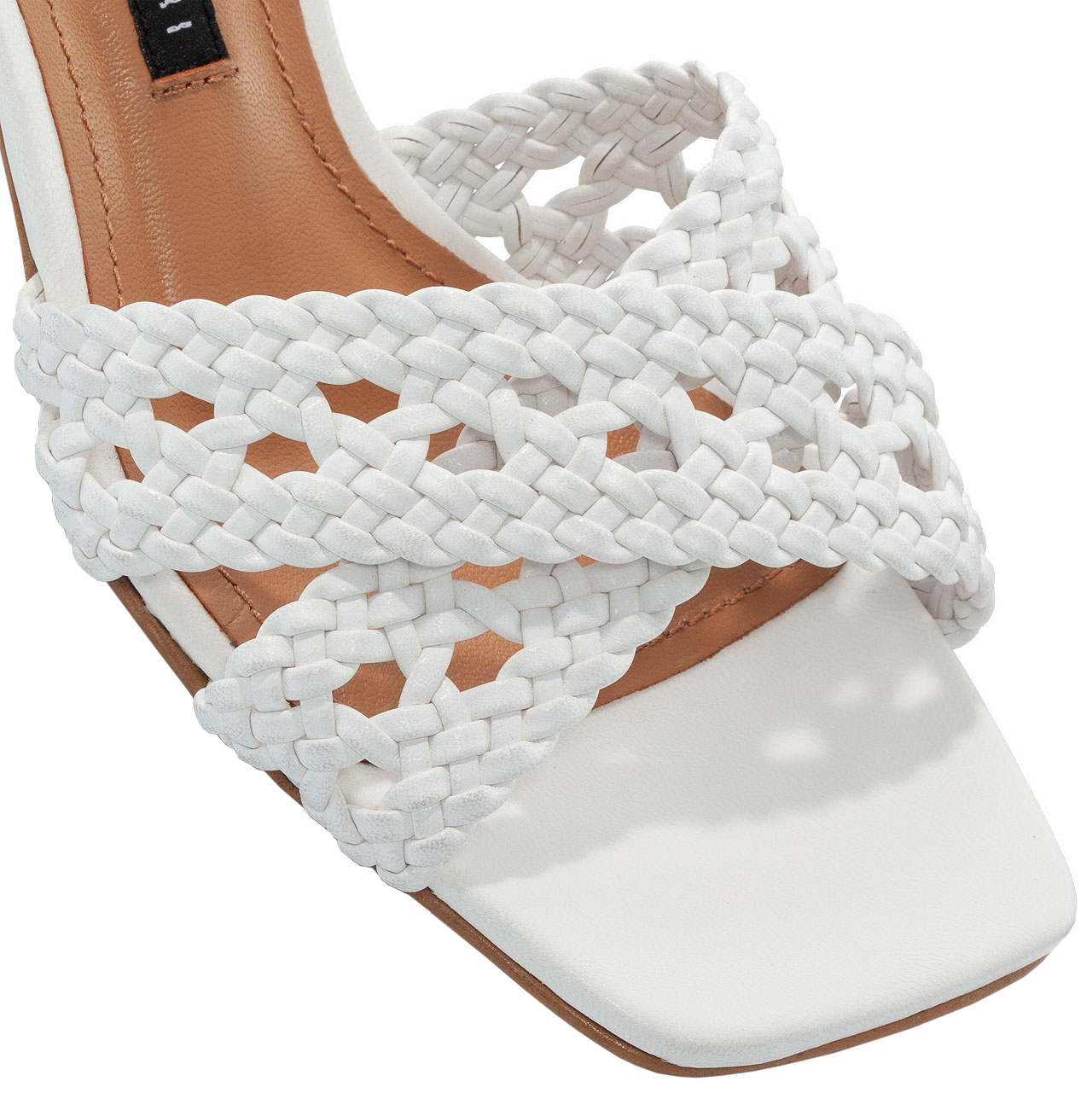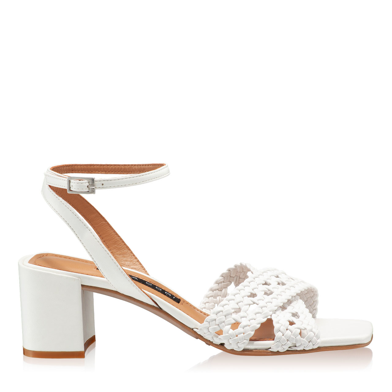 Sandale dama din piele naturala cu bareta impletita.Inchiderea se face cu o catarama aurie.Inaltimea tocului este de 55mm.