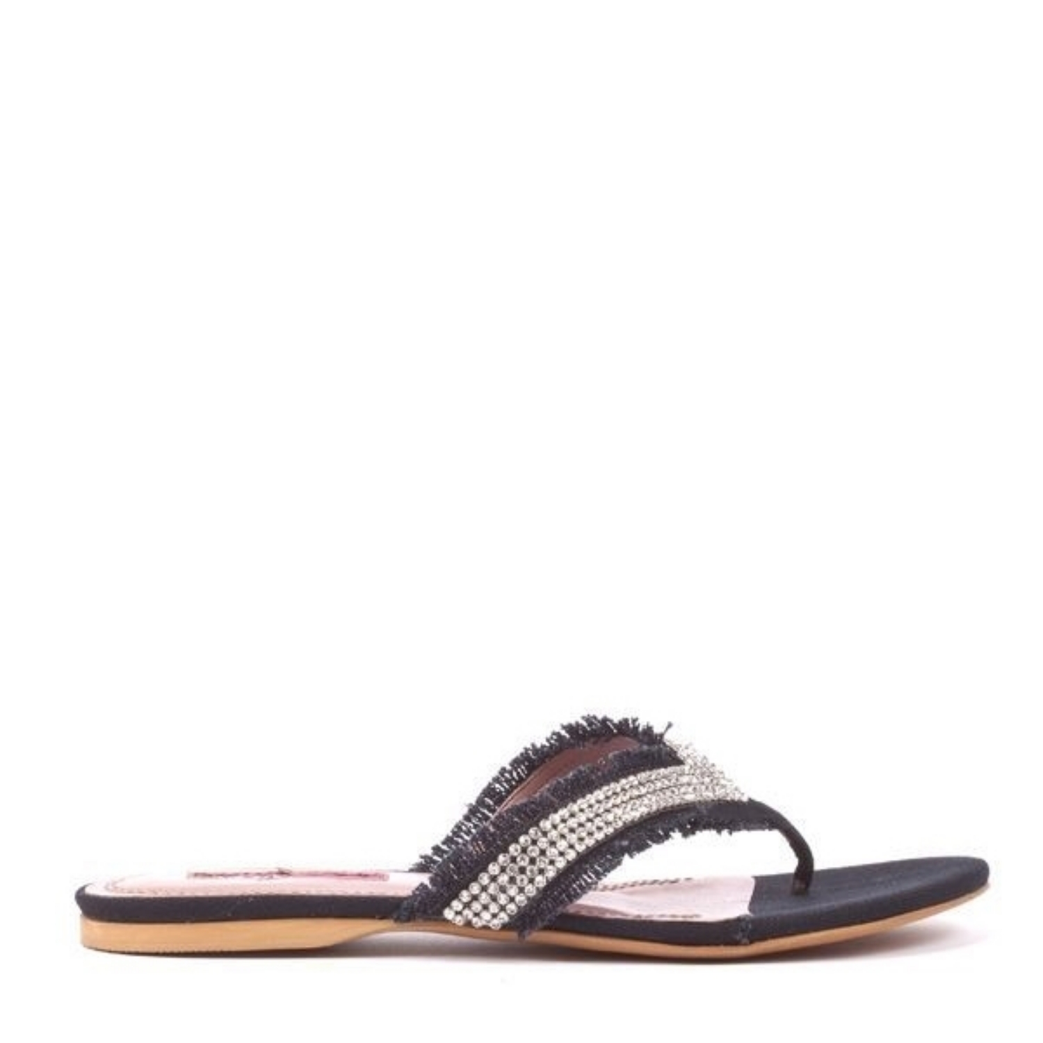 Saboti dama din material textil cu strasuri aplicate. Talpa este din piele.
