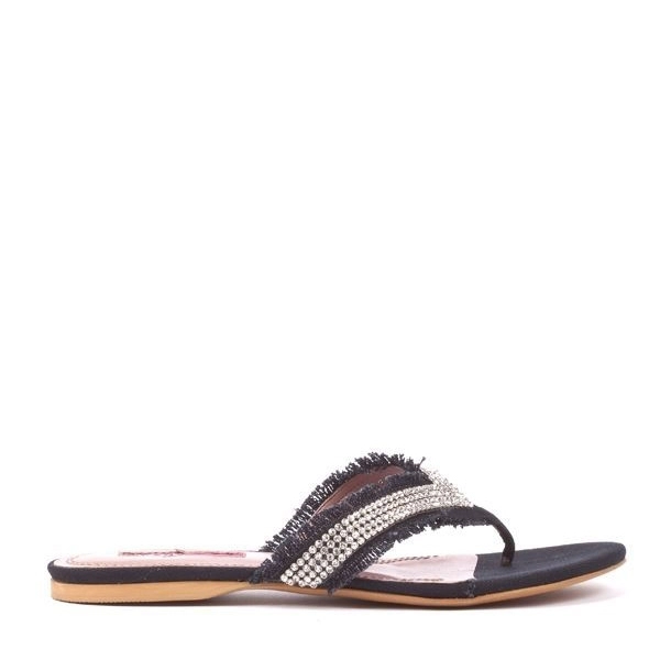 Saboti dama din material textil cu strasuri aplicate. Talpa este din piele.