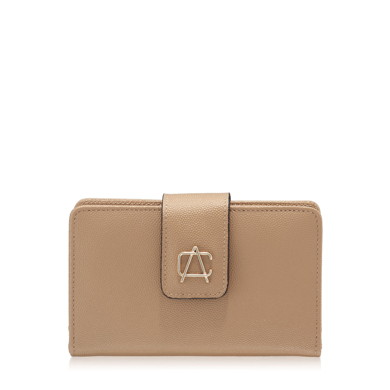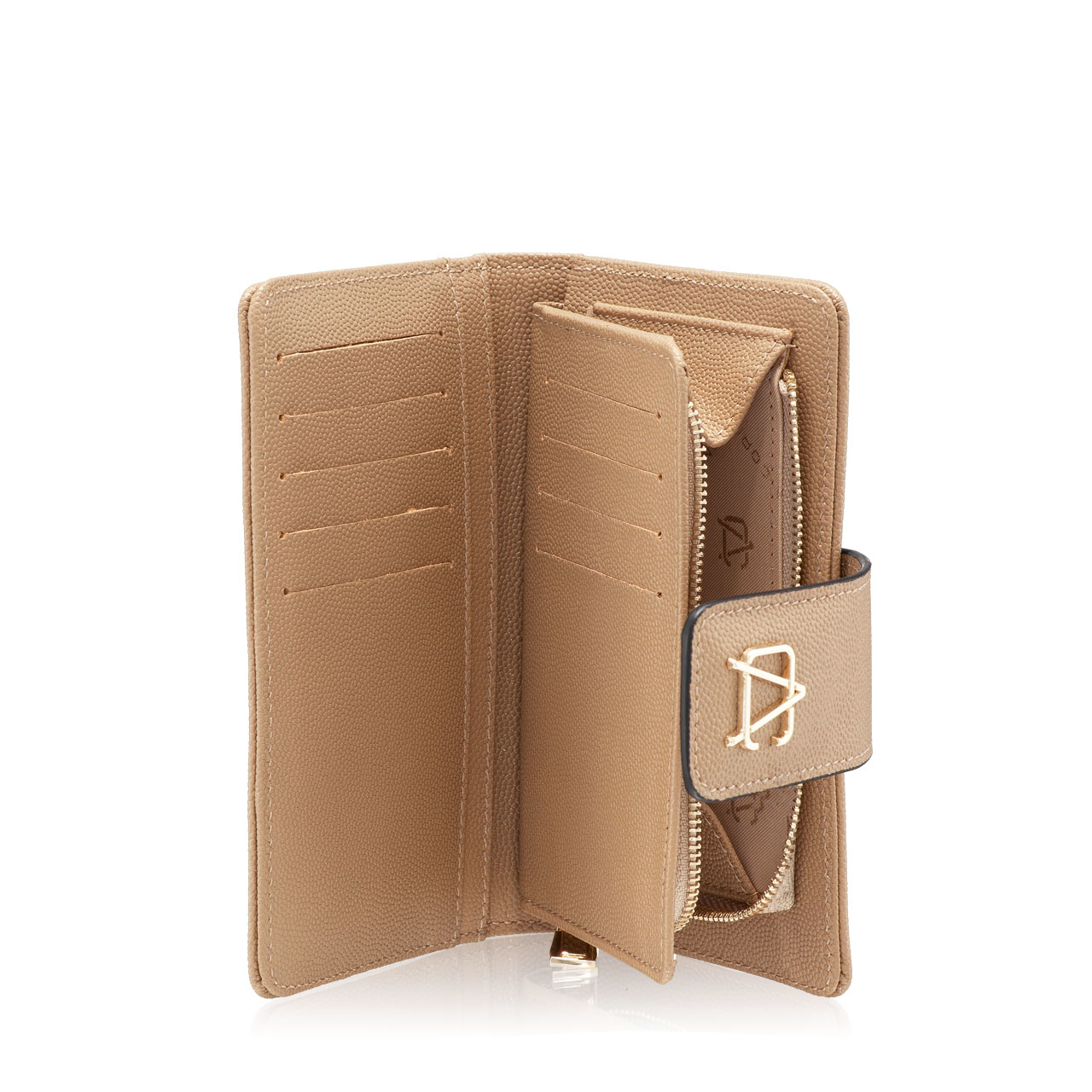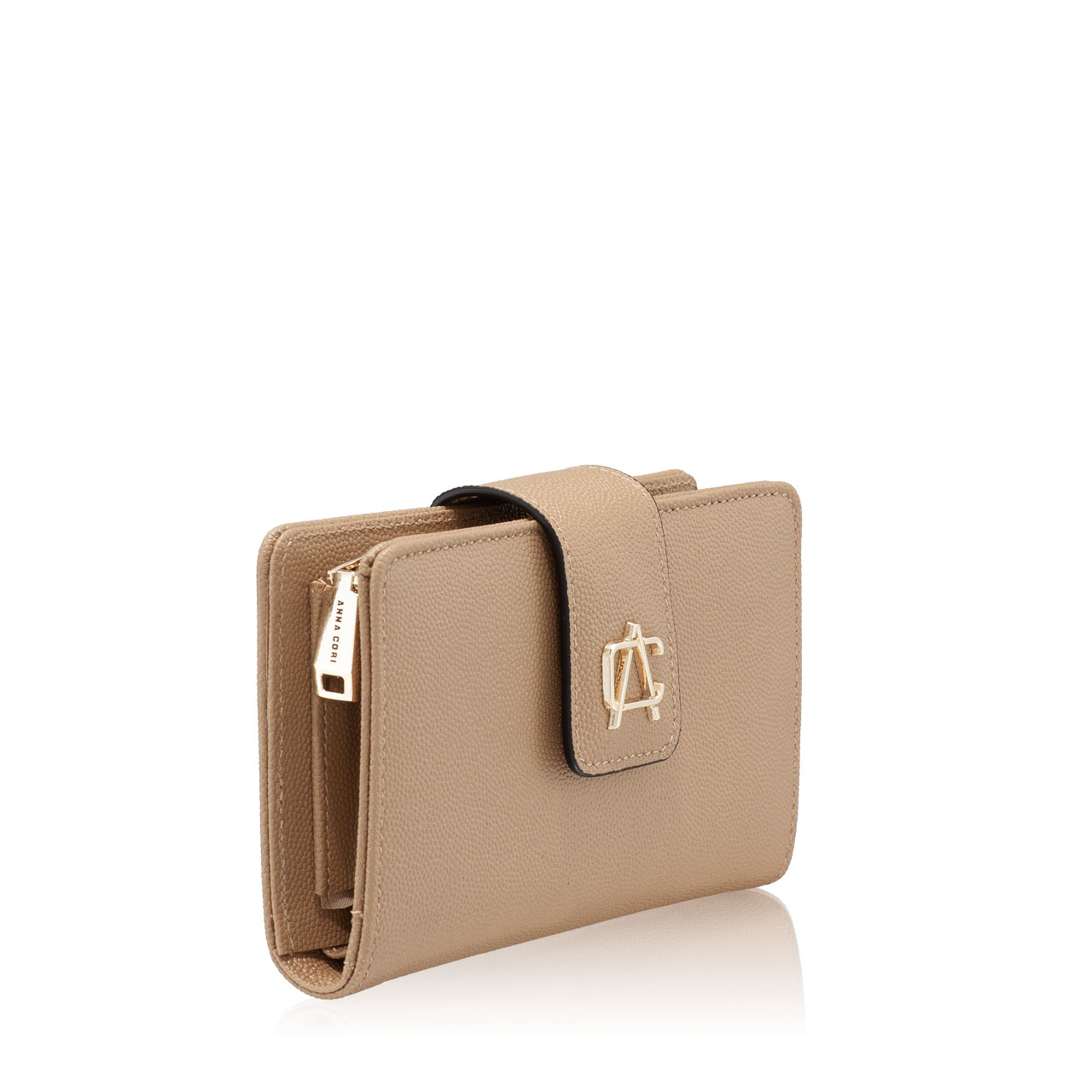 Portofel dama din piele naturala stampata accesorizat cu monograma Anna Cori. Este alcatuit din 2 compartimente, un buzunar cu fermoar pentru monezi si 9 spatii pentru depozitare carduri.Inchiderea se face cu magnet.